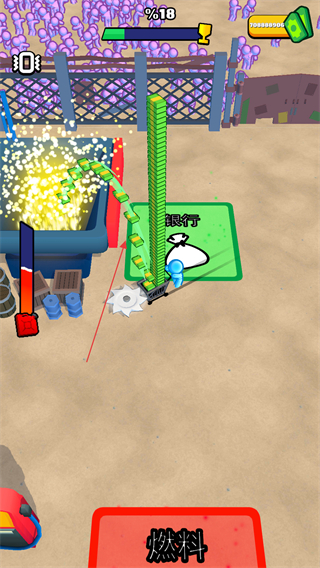 4、通过不断收割僵尸推进关卡进度,此外玩家可将金币存入银行利用无限金币的优势,可更自由地进行升级和资源管理。