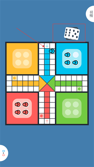3、游戏开始后双方玩家轮流点击掷骰按钮,根据骰子掷出的点数,移动自己的飞行棋棋子在棋盘上前进。