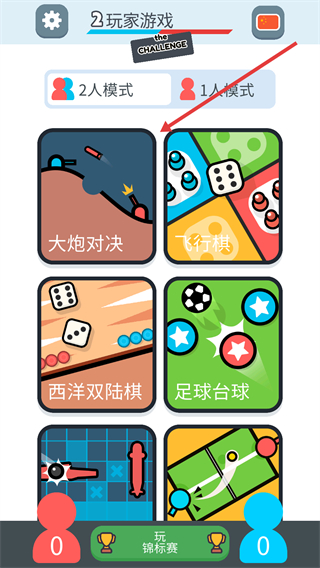 1、在游戏主界面选择2人模式,从提供的游戏选项中点击选择自己想挑战的游戏模式,然后点击进入。