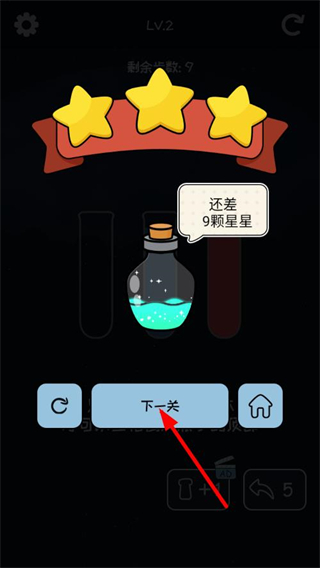 3、完成所有液体的分类后,关卡达成目标,可以获得对应的星级评价,积累通关的星星奖励。