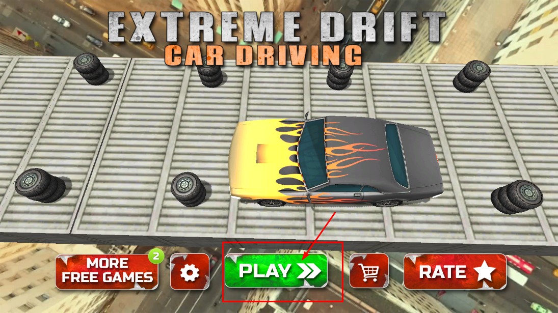 1、进入游戏界面,点击绿色PLAY按钮,即可开始游戏,开启极限漂移赛车驾驶挑战。