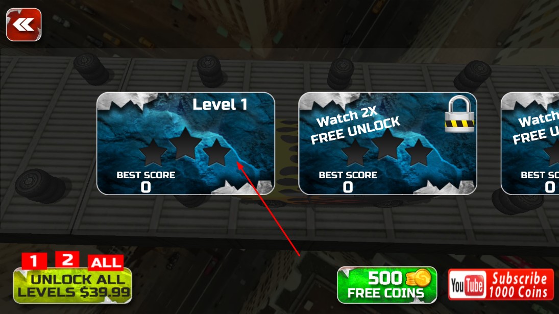 2、在关卡选择界面,选择Level1,进入第一关的驾驶场景,开始游戏挑战。