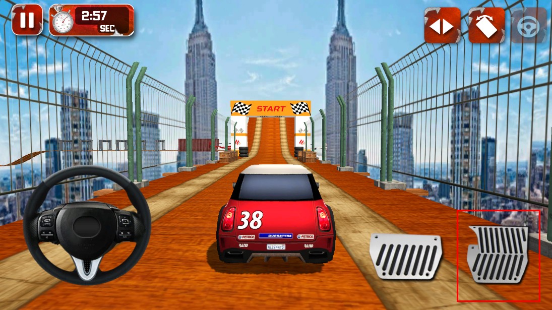 3、驾驶时,点击右侧油门踏板,可操控赛车在赛道上加速行驶,开启漂移等驾驶操作。
