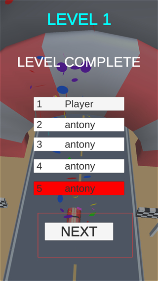 3、在规定的赛道上行驶,率先冲过终点线,完成当前关卡挑战完成关卡后,游戏会显示排名情况,确认自己的游戏成绩。