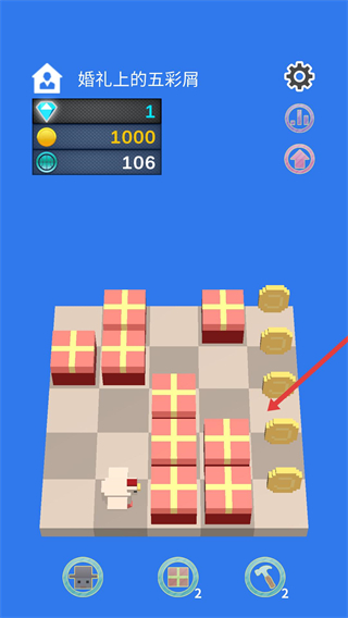 2、开启礼盒后,会出现金币等奖励,继续操控角色移动,开启更多礼盒,收集更多金币,提升游戏收益。